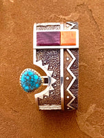 SOLD Ric Charlie Sterling Silver Tufa Cast Inlaid Cuff Bracelet with Turquoise Gold