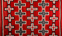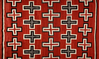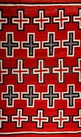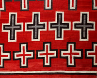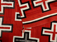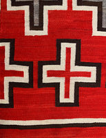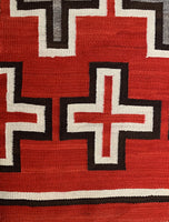 This rug is an excellent example of the transitional style prevalent at the end of the 19th century and the beginning of the 20th century. Unusually large with exquisite vivid reds that survived the test of time, the rug feature Navajo crosses, symbolic of the four sacred directions. The rug has extremely fine and tight weave that really shows the attention of detail and pure beauty. It was cared for in the same family for generations.