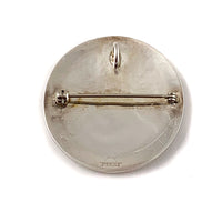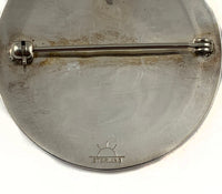 This is a fine example of Hopi overlay technique by Hopi artist Weaver Selina. Silver overlay jewelry is distinctive of Hopi silversmiths. With a clear and elegant design, this particular example, which is 1-1/2 inches in diameter, can be worn as either a pin or a pendant. Selina's hallmark as a Hopi artist is a rising sun (or sunforehead).