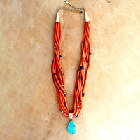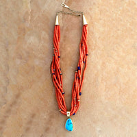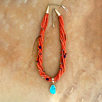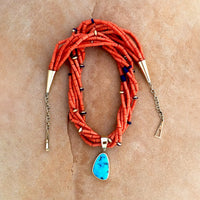 SOLD Ric Charlie Red Coral Necklace with Removable 14k Gold Pendant with Morenci Turquoise